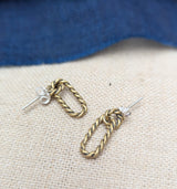 Rope hoop earrings with a stud backing, made out of antique brass right here in New England!