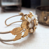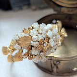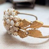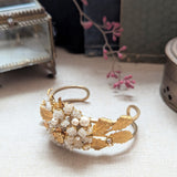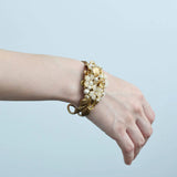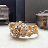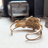 Based off of the beautiful mountain cherry blossom, this detailed bangle makes an elegant statement. Made in Japan with vintage jewelry findings from all over the world, and no two pairs are exactly alike. Enjoy the natural patina of brass on this bracelet.