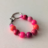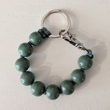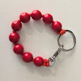 Colorful keychains with large painted wooden beads by Berlin designer Ina Seifart. Can be worn around the wrist like a bracelet/wristlet. The perfect blend of stylish, fun, and function for your keys and other essentials!