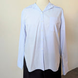 A classic, clean blouse in light blue. Slightly longer in the back than in the front. Style this lightweight top on its own or layer it under a vest or sweater.