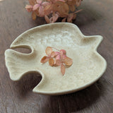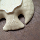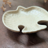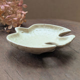 This beautiful little bird plate is finished with a speckled glaze. Use it for sauce or tea bags in the kitchen, or use them to hold rings and other small things