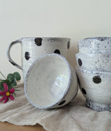 Small Handmade Ceramic Bowl - Black Polka Dots
