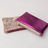 Small zippered pouched to hold your your cards, money, lipsticks, phone chargers or whatever you choose! Pick you color from the dropdown menu. Both colors have a red zipper.