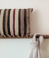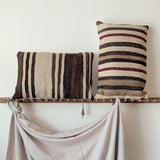 These beautiful striped pillows are made of vintage Turkish kilim rugs, woven in the 1960's. Rich brown tones. One-of-a-Kind.