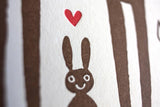 Letterpress printed on natural white paper, blank inside. It comes with a matching envelope. Size: A2 (4.25" x 5.5").