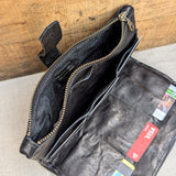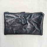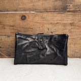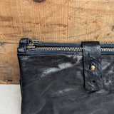 The Double Zip Wallet Clutch - Black Washed Lambskin