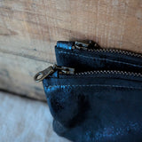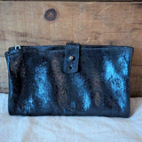 The Double Zip Wallet Clutch - Distressed Blue and Black