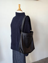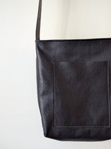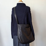 Large, lightweight, carryall leather bag in a simple bucket shape with all the functionalities: two large pockets (including a zippered one inside), a key strap, an adjustable strap that allows you to wear the bag over the shoulder as a hobo or as a cross body bag. A deep gusset allows you to fit a lot. Zipper closure.