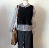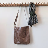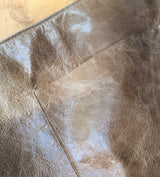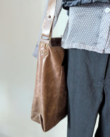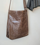 Large, lightweight, carryall leather bag in a simple shape with all the functionalities: two large pockets (including a zippered one inside), a key strap, an adjustable strap that allows you to wear the bag over the shoulder as a hobo or as a cross body bag.  A deep gusset allows you to fit a lot. Zipper closure.