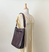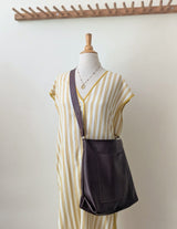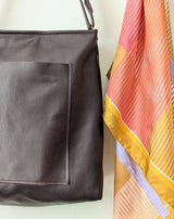 Large, lightweight, carryall leather bag in a simple shape with all the functionalities: two large pockets (including a zippered one inside), a key strap, an adjustable strap that allows you to wear the bag over the shoulder as a hobo or as a cross body bag.  A deep gusset allows you to fit a lot. Zipper closure.