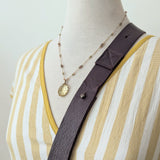 Made of top grain Italian leather that has a silky finish and shows the natural grain of the leather. This beautiful leather is a reddish toned chocolate brown.