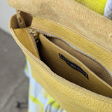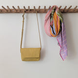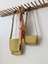 The new mini messenger bag is perfect for those who just want to carry the minimum. A large open outside pocket on the back of the bag will hold your phone (4.25" h x 7.25 w) for quick access. A zipper is hidden under the flap to keep your personals safe. A small inside card pocket will fit your license & credit cards should you not want to carry your wallet. Adjustable leather strap with solid brass buckle.