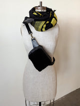 A cute, updated version of the old fanny pack. Made of soft shearling and contrasting black leather.  Boxy construction allows to carry more than expected (it's a little bit bigger than the Porto belt bag).  Can be worn over the hip or across the chest or back.