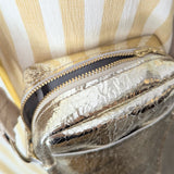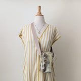 The little brother of our classic Bourvil Bag! It has two outside pockets and one inside credit card pocket. Deep enough to fit a phone, small water bottle, glasses, and a small wallet. Great travel bag since you can slip your passport and boarding pass in the outside pockets for easy access, and it zips fully closed.