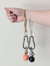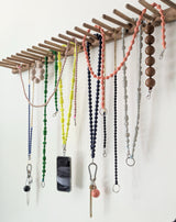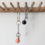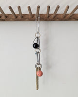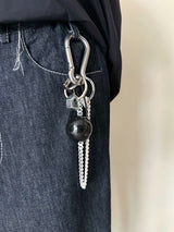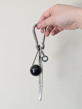 Funky statement keychain and bag charm by Berlin designer Ina Seifart. Includes a steel carabiner with steel elements and an extra large wooden bead. The perfect blend of stylish, fun, and function for your keys and other essentials!
