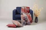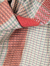 Poppy red, pink and seafoam green combine in various combinations of pattern, throughout this boldly striped throw.