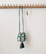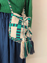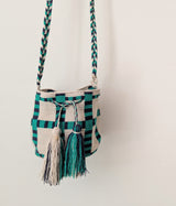 Woven Crossbody Bucket Bag - Black and Emerald