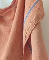 Plain weave with a simple blue stripe. No two are exactly alike!