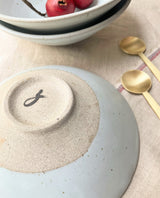 These one of a kind, handmade bowls would make the perfect addition to your dining experience! Simple but beautiful with speckled, blueish white semi-matte glaze. Due to the handmade nature of these plates, each one is different and may have minor imperfections.