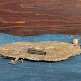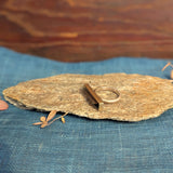 The one-of-a-kind pyrite and quartz ring is hand-fabricated in sterling silver and 18k gold and has a soft matte finish. The bezel setting is solid 18k gold, with the ring shank and backsheet in solid sterling silver. The stone is a doublet, which is when two different materials are adhered together with a special adhesive, then cut and polished. The bottom of the stone is a slice of pyrite, and the faceted top layer is quartz. The combination of the two stones makes for an interesting and eye-catching effect.