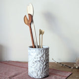 Tall vessel handmade by French artist Florence Penault. Can be used for flowers but would also look great on a counter as a utensil container. The finish is done in the Korean Buncheong style, which dates back to the 14th century. One of a kind.