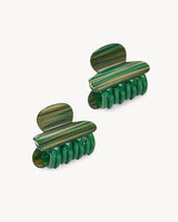 A petite sized pair of our signature double-walled hair claws. Handcrafted from fine Italian acetate with reinforced hardware. Suitable for all hair types and textures. - Measures: 1.75 inches wide x 1.375 long - Italian Acetate - Stainless Steel Hardware