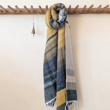Japanese Extra Soft Woven Wool Cotton Scarf - Medium - Sunflower Yellow, Forest Green, and Dark Teal
