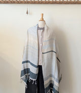 The wool version of the popular Tamaki Niime scarves. Made of the softest wool and cotton mix, woven on 1960's looms, the scarves have unique stripes in a wide range of color combination. Think of a fluffy and cozy cloud wrap made of lightweight, soft open weave gauze. Each scarf is one of a kind.