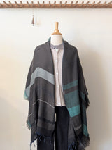 Japanese Extra Soft Woven Wool Cotton Scarf - Medium - Teal, Coca, and Stone