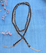Long Chain and Ribbon Scarf Necklace with Gems - Black