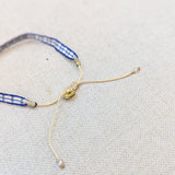 Designed to fit comfortably and securely on your wrist, with an adjustable opening to fit your wrist. Width 1/8". Woven on a handloom.