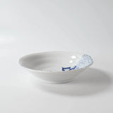 This sweet blue and white ceramic dish is the perfect thing for adding a some fun to your daily life! The deep, refined blue is reminiscent of classic Japanese Gosu porcelain. Created through multiple layers of dye, giving each piece a rich and elegant finish. With an illustration of a cat ice skating on, it this bowl captures the playful side of Japanese craftsmanship and culture.
