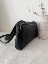 Sweet horizontal tote in very soft yet sturdy Italian leather. Sized to fit just your essentials, such as a wallet, glasses, keys and more. Two large outside pockets to easily access your phone (please check the dimensions) + one small inside credit card pocket.