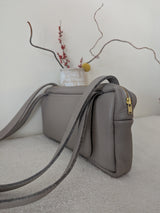 Sweet horizontal tote in very soft yet sturdy Italian leather. Sized to fit just  your essentials, such as a wallet, glasses,  keys and more.  Two large outside pockets to easily access your phone (please check the dimensions)  + one  small inside credit card pocket.