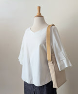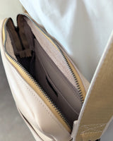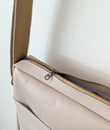 The Bourvil is a clean and classic everyday bag. It has one large pocket on the outside, one zippered pocket in the back, and one inside pocket. Fits an 11" laptop computer or a tablet. Wear it on the shoulder or as a crossbody with the adjustable strap.