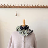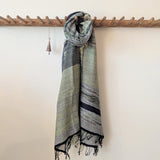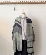 Japanese Extra Soft Woven Wool Cotton Scarf - Medium - Mint Green, Deep Grey, and Stone