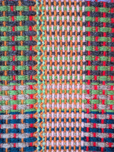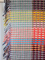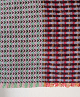Woven in merino lambswool, this throw's pixelated motif combines bold colored blocks with fine, detailed vertical stripes. This double-sided design also has a contrasting tweed-patterned border and makes a stunning addition to a room.