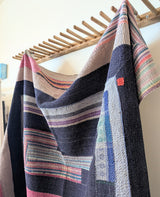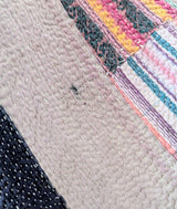 Vintage Kantha Throw Blanket - Pink, Green, Navy Blue