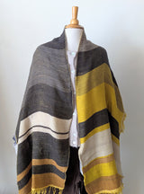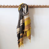 The wool version of the popular Tamaki Niime scarves. Made of the softest wool and cotton mix, woven on 1960's looms, the scarves have unique stripes in a wide range of color combination. Think of a fluffy and cozy cloud wrap made of lightweight, soft open weave gauze.  Each scarf is one of a kind.