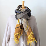 Japanese Extra Soft Woven Wool Cotton Scarf - Medium - Sunflower, Gold, Black, and White