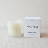 Apotheke candles are hand-poured with perfume-grade fragrance oils and a high quality soy wax blend. Each scent is formulated with a unique wick, wax, and fragrance combination to create a strong and clean burn.