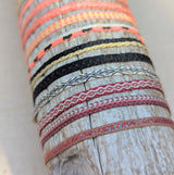Designed to fit comfortably and securely on your wrist, with an adjustable opening to fit your wrist. Width 7/16 to 1/2". Woven on a handloom.