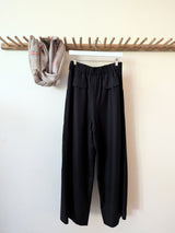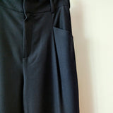 Pleated wide leg wool trousers from German brand Susanna Bommer. Two front pockets and two decorative pockets on back.