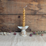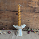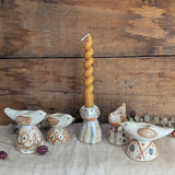 Handmade and hand-painted dove candle holders. Decorated with white glaze and oxides. Each is one of a kind.