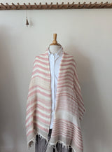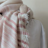 Japanese Extra Soft Woven Wool Cotton Scarf - Medium - Seashell Pink and Ivory