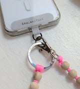 Fits all phones! No need to worry about fitting your phone thank to a clever small insert that slips in the back of your existing phone case. A small D-ring comes through the charger opening and attaches to the necklace ring and clasp, and off you go! The insert fits most phone cases as long as the charger opening is at least 3/8"wide