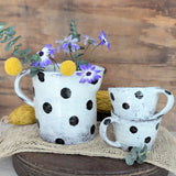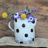 Large Handmade Ceramic Pitcher - Black Polka Dot