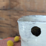 Handmade in Boston by French artist Florence Penault, this one of a kind extra large pitcher is decorated with a sweet black dot pattern. The finish is done in the Korean Buncheong style, which dates back to the 14th century. Perfect for serving your favorite beverages or for displaying some flowers!