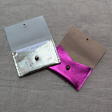 Soft, small envelope pouches to hold your your credit cards or folded bills.` Solid brass button tud closure.