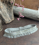 Approx measurements: 13.8" long, 0.5" wide, 0.6" fringe. Adjustable size with three snap buttons